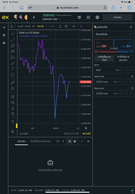 • เทรดทองคำ 0.01 lot exness terminal