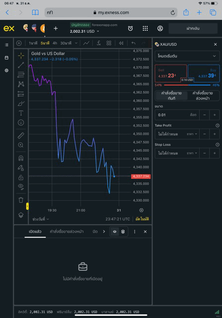 • เทรดทองคำ 0.02 lot exness terminal