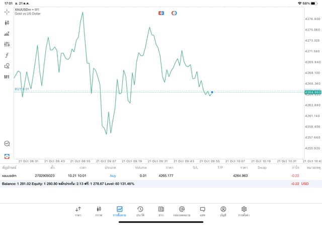 การเทรดทองคำ 0.01 lot บนแอปเล่นหุ้น Meta Trader 5 หรือ MT5 กับ exness โบรกเกอร์ Forex และ การเล่นหุ้นออนเน็ตที่มีปริมาณการซื้อขายสูงที่สุดในโลก