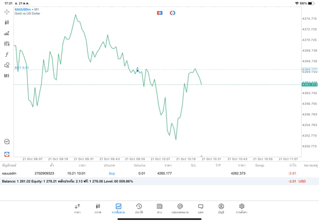 -2.81$ เปิดไว้ หรือ ปิดเลย การเทรดทองคำครั้งนี้ ถ้าเปิดไว้ราคาเปลี่ยนแปลงยังส่งผลต่อการได้กำไรขาดทุน อาจบวก อาจลบ