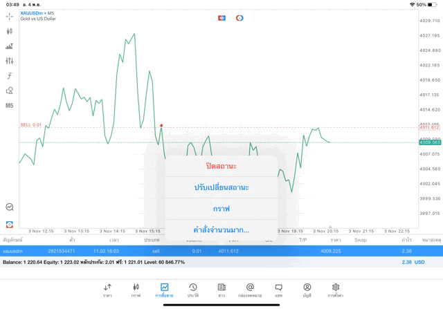 คลิ๊กค้างบนการเทรดที่ต้องการปิด แล้วเลือก ปิด