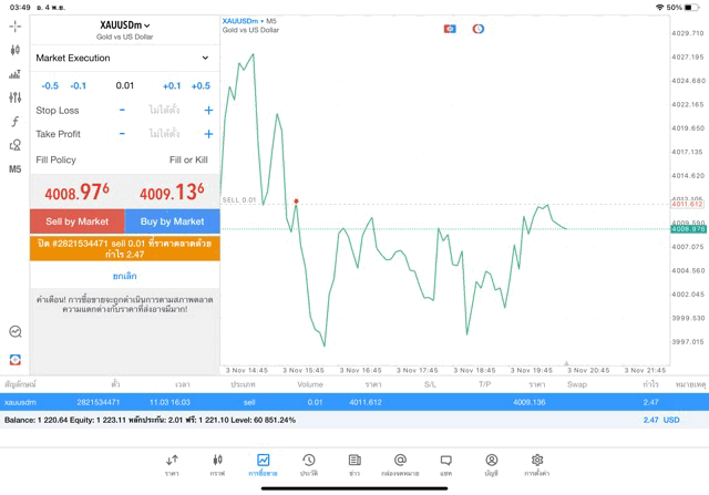 การเทรดทองคำ 0.01 lot บนแอปเล่นหุ้น Meta Trader 5 หรือ MT5 กับ exness โบรกเกอร์ Forex และ การเล่นหุ้นบนเน็ตที่มีปริมาณการซื้อขายสูงที่สุดในโลก เล่นทองคำ,น้ำมัน,ดัชนีหุ้น,โลหะ,เงินดิจิตอล