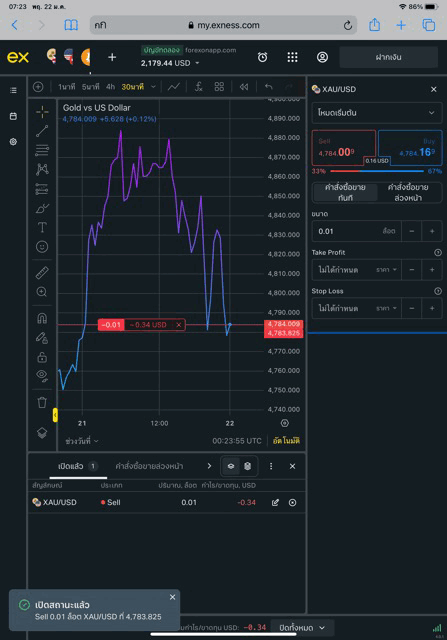 เทรดทองคำ 0.01 lot exness terminal