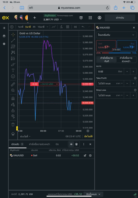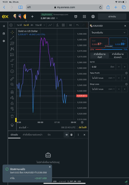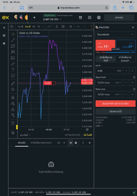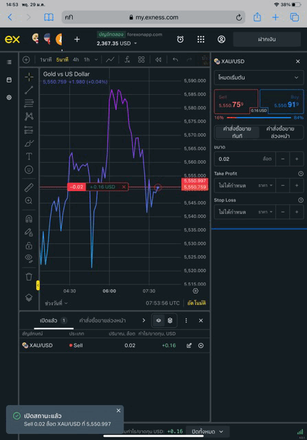 เทรดทองคำ 0.02 lot exness terminal