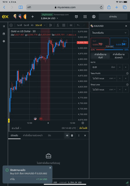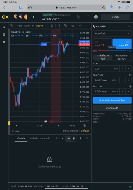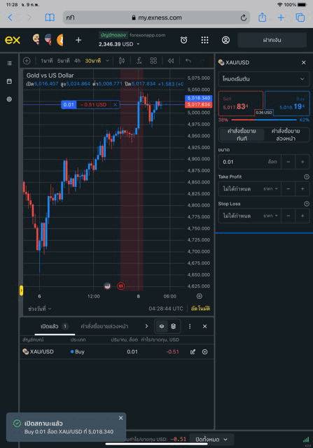เริ่มต้นส่งคำสั่ง ซื้อขาย XAUUSD(ทองคำ)บน exness terminal