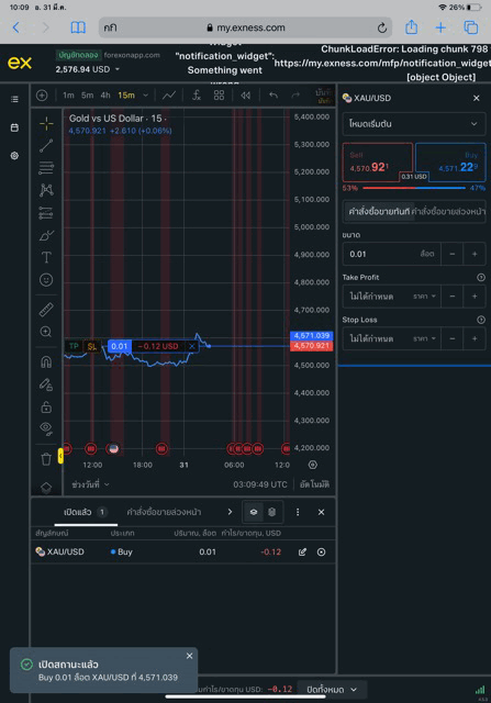 เริ่มต้นส่งคำสั่ง ซื้อขาย XAUUSD(ทองคำ)บน exness terminal