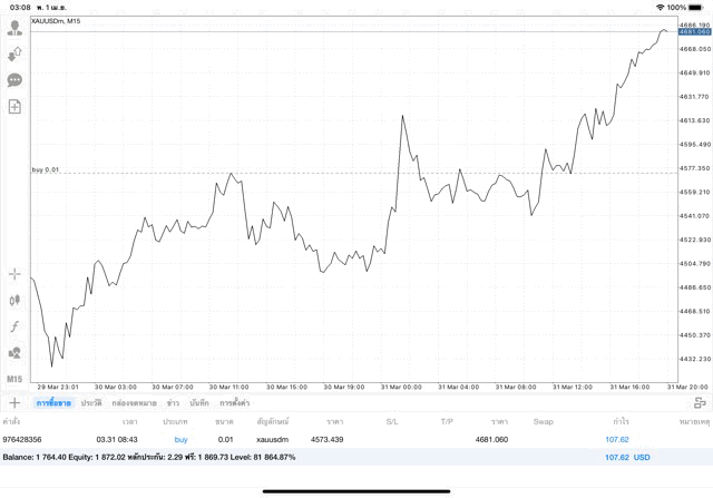 +107.62$ เปิดไว้ หรือ ปิดเลย การเทรดทองคำครั้งนี้ ถ้าเปิดไว้ราคาเปลี่ยนแปลงยังส่งผลต่อการได้กำไรขาดทุน อาจบวก อาจลบ