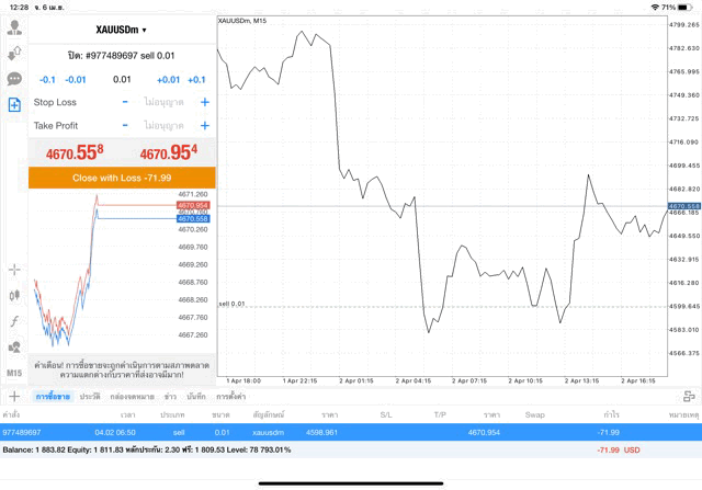 คลิ๊กปุ่มสีส้ม ปิดการเทรดทองคำครั้งนี้ ราคายังเปลี่ยนแปลงยังส่งผลต่อกำไรขาดทุนหากยังไม่คลิ๊กปิดสถานะ