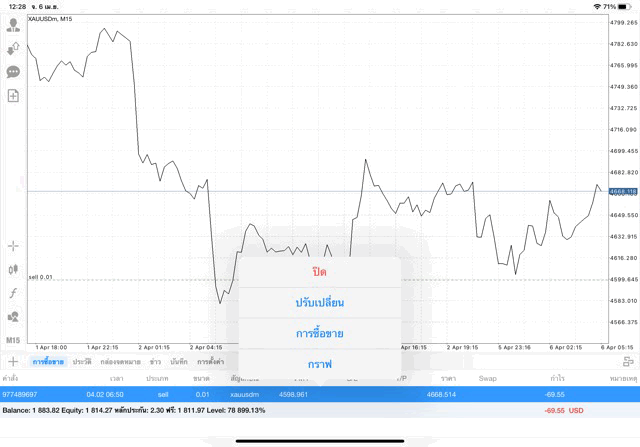 คลิ๊กค้างบนการเทรดที่ต้องการปิด แล้วเลือก ปิด