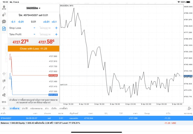 คลิ๊กปุ่มสีส้ม ปิดการเทรดทองคำครั้งนี้ ราคายังเปลี่ยนแปลงยังส่งผลต่อกำไรขาดทุนหากยังไม่คลิ๊กปิดสถานะ