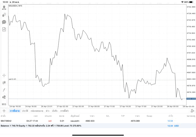 +12.54$ เปิดไว้ หรือ ปิดเลย การเทรดทองคำครั้งนี้ ถ้าเปิดไว้ราคาเปลี่ยนแปลงยังส่งผลต่อการได้กำไรขาดทุน อาจบวก อาจลบ