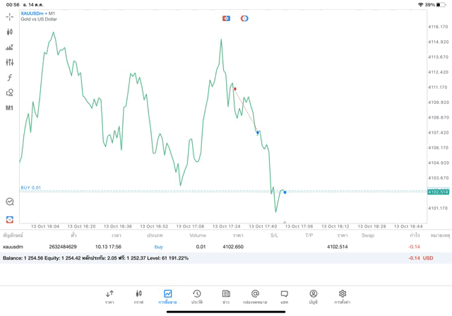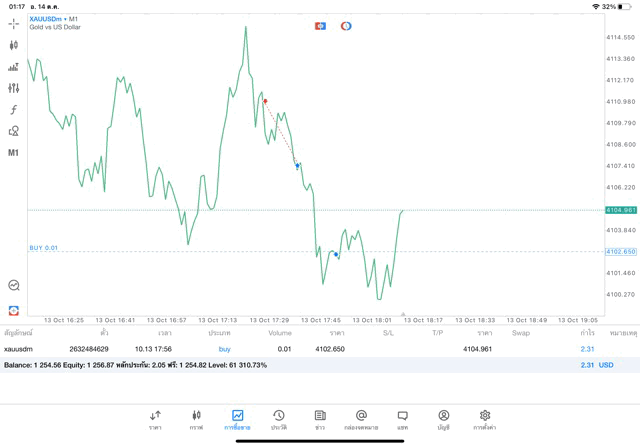 ทองคำ 0.01 lot แอป MT5 exness