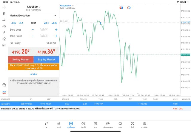 คลิ๊กปุ่มสีส้ม ปิดการเทรดทองคำครั้งนี้ ราคายังเปลี่ยนแปลงยังส่งผลต่อกำไรขาดทุนหากยังไม่คลิ๊กปิดสถานะ