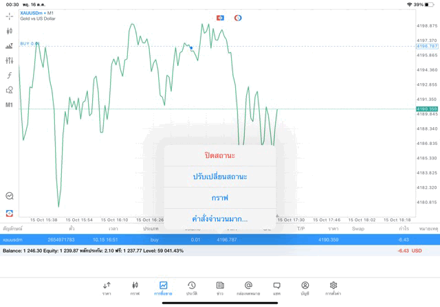 คลิ๊กค้างบนการเทรดที่ต้องการปิด แล้วเลือก ปิด