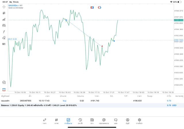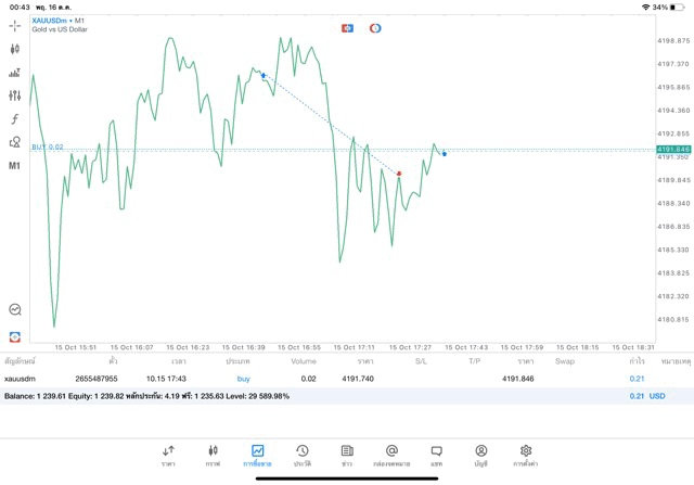 ทองคำ 0.02 lot แอป MT5 exness
