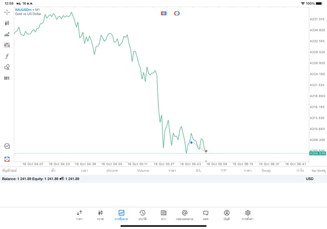 ทองคำ 0.01 lot แอป MT5 exness