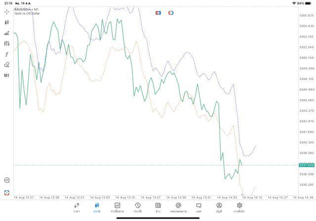 เปิดกราฟแสดงราคาทองคำ ที่ 1 นาที หรือ M1 จากแผงเมนูวงกลม